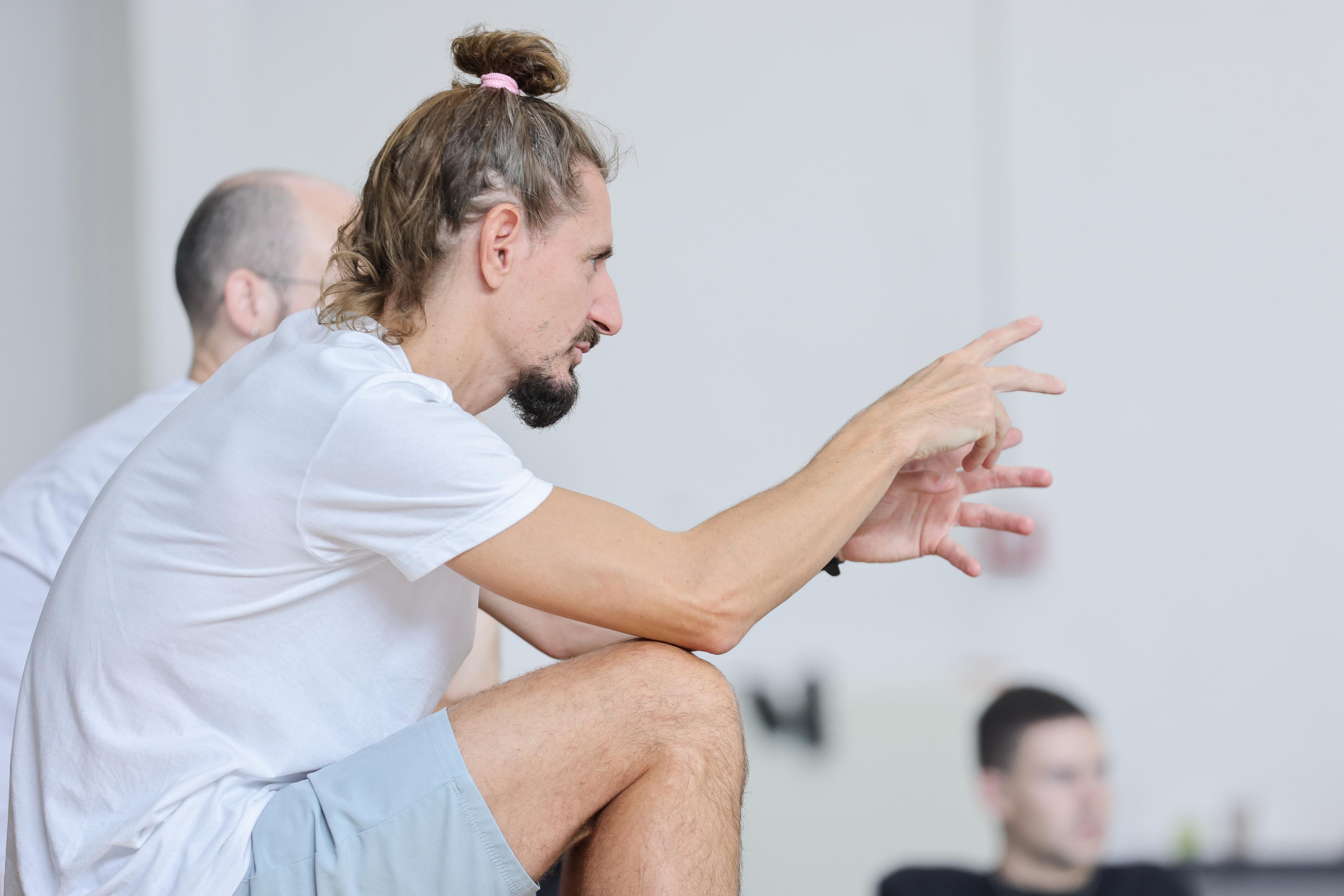 Wir vereinen zeitgenössisches Denken und Tanztradition, indem wir experimentieren und traditionelle Vorstellungen von Choreografie überdenken und weiterentwickeln. Eine zentrale Grundlage der Arbeit des Ensembles ist die von Ioannis Mandafounis entwickelte Methodik. Diese ermöglicht es den Tänzer*innen, aus ihren Körpern, Bewegungen und Aktionen in jeder Aufführung und jedem Moment neu live auf der Bühne eine Choreografie zu kreieren.