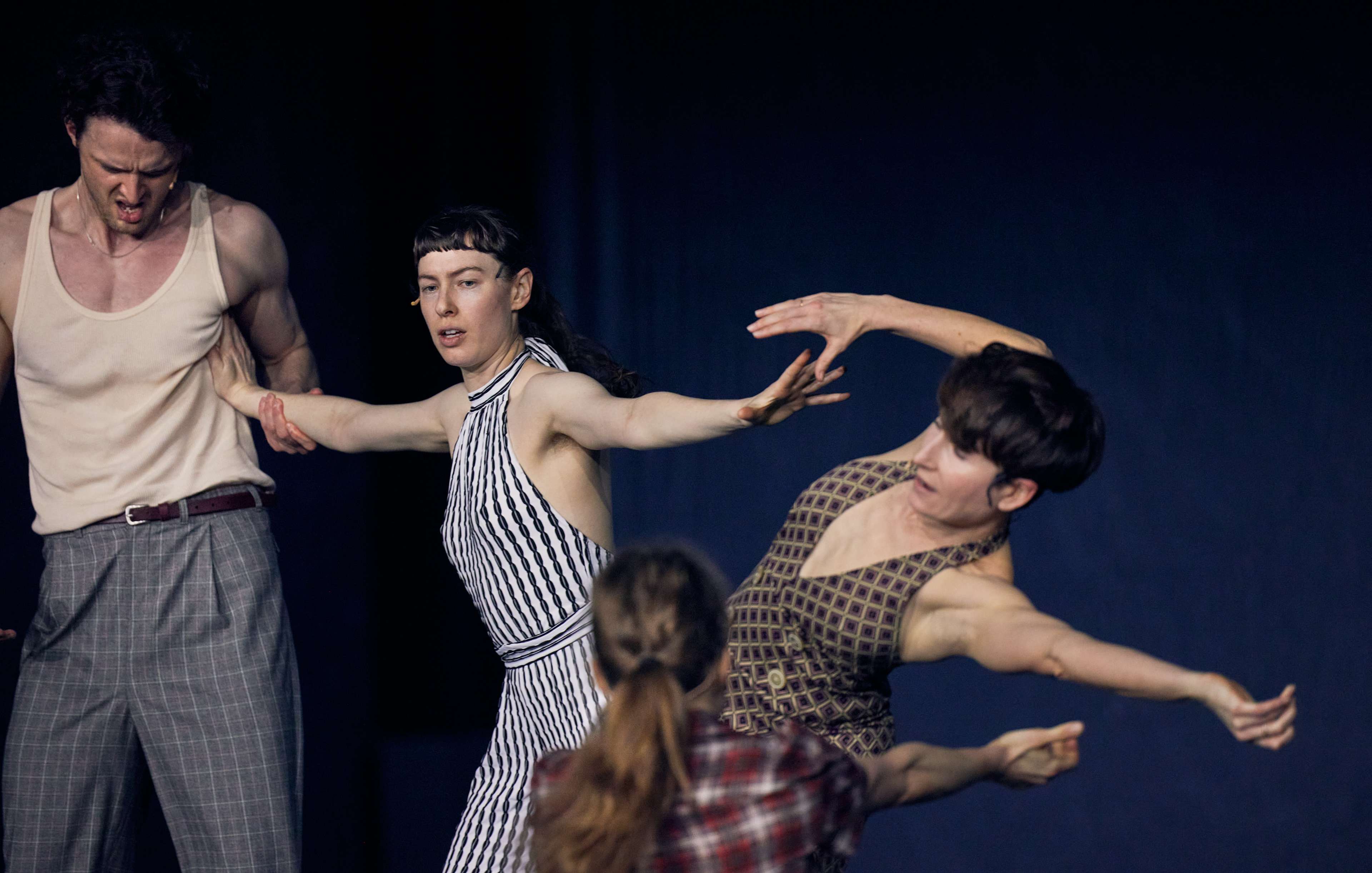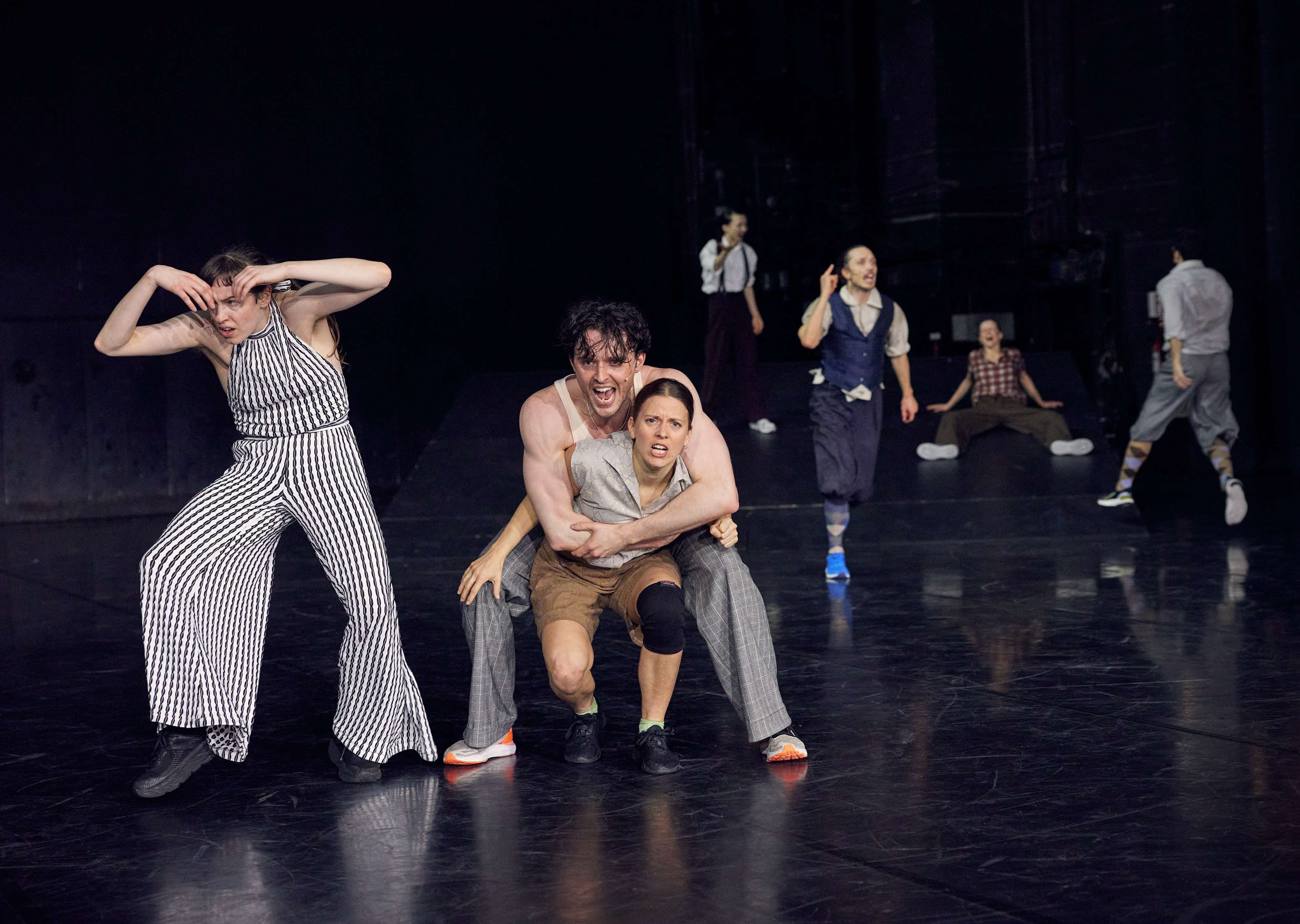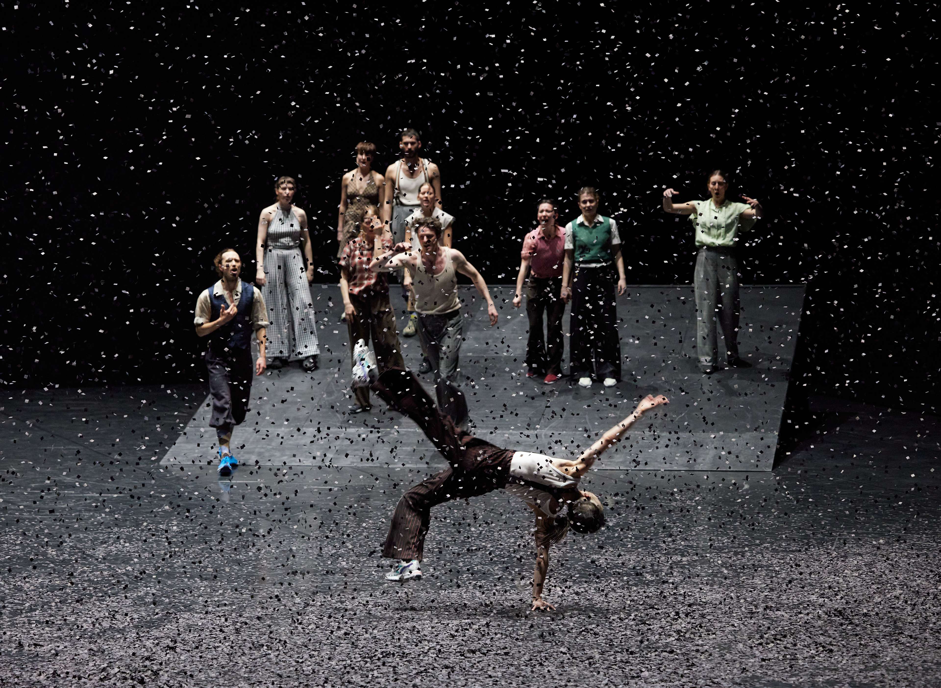 Live-choreography, the methodology of Ioannis Mandafounis, allows for a choreography to be created on the spot. In “Lisa” this includes the dancers individually choosing when to enter and exit the stage. From this simple arrangement a lot of different situations can arise. The sudden appearing and disappearing creates surprising changes, a one-on-one encounter between two dancers might abruptly turn into a group scene. Someone is suddenly left alone and an emotional solo starts.