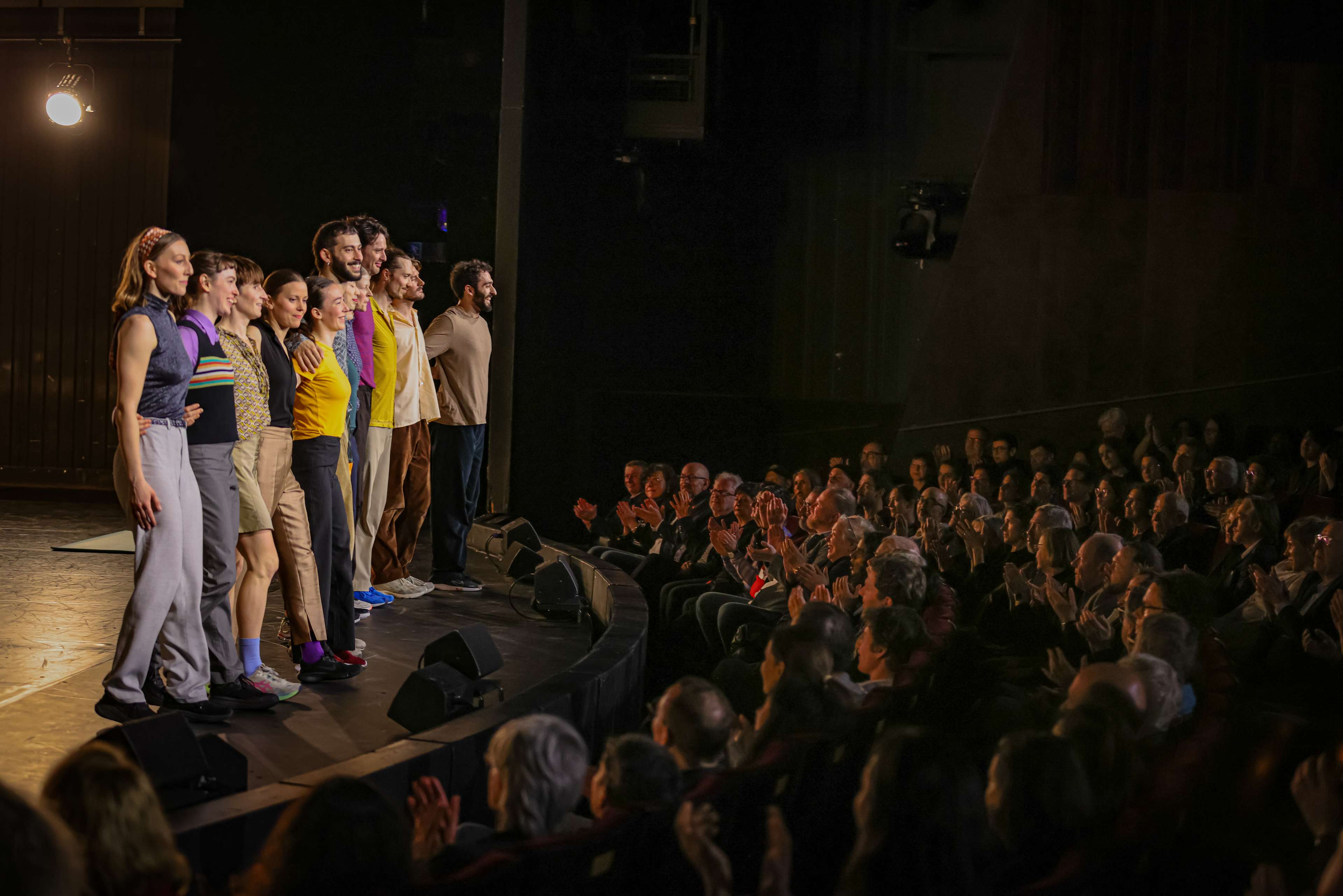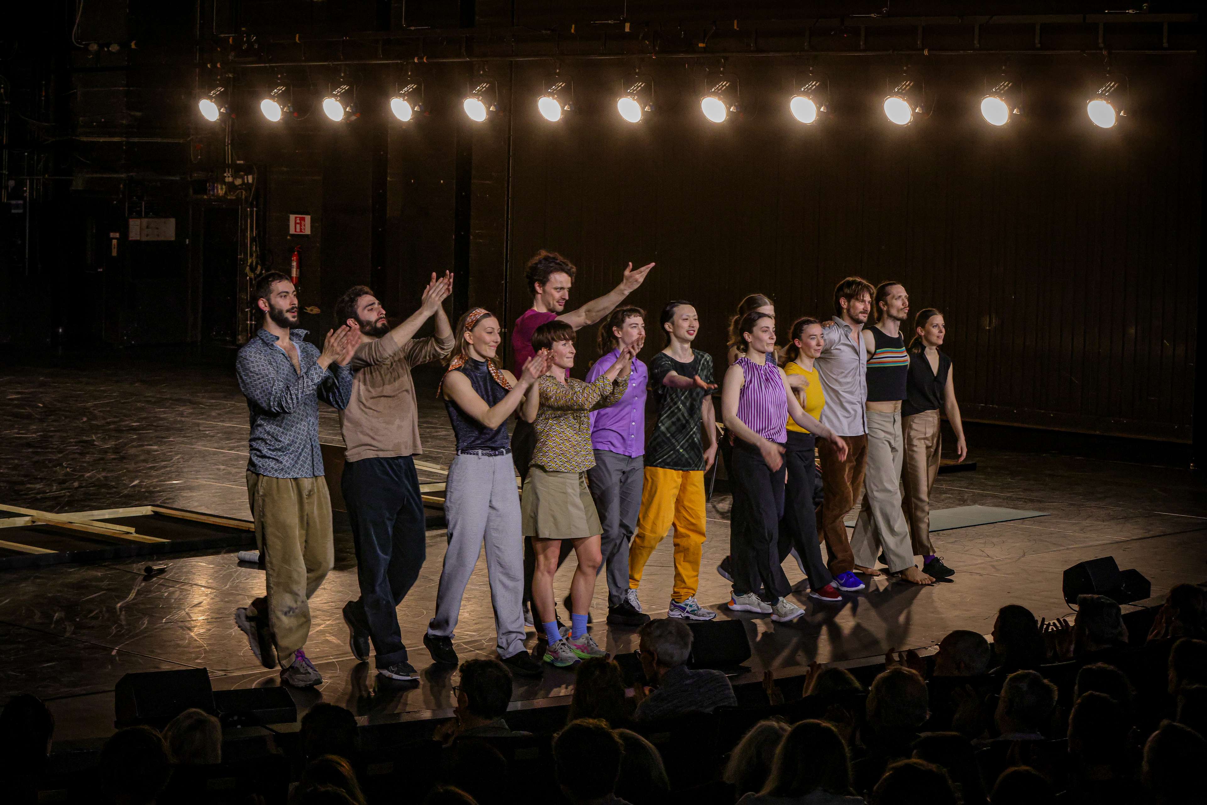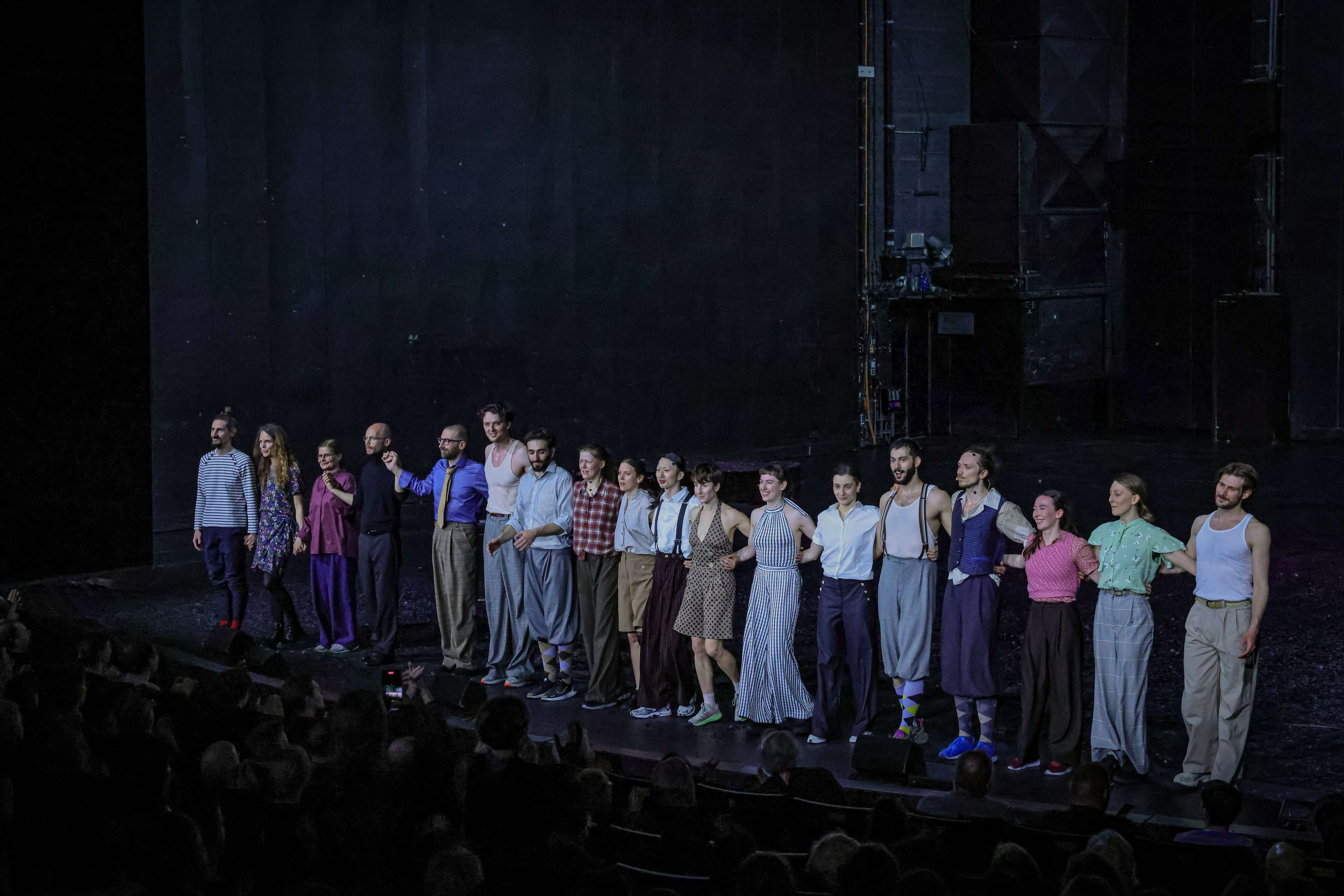 On 28.03.2024 our double bill "Dance2Narration" celebrated its premiere at Schauspiel Frankfurt. After the intensive rehearsals in the studio and the move to the Schauspiel stage, everyone was happy when the time finally came on Thursday and the pieces "Bis.N.S. (as usual)" and "Lisa" could be performed in front of an audience. The house was full and there was a lot of dancing at the premiere party afterwards – a successful premiere evening!