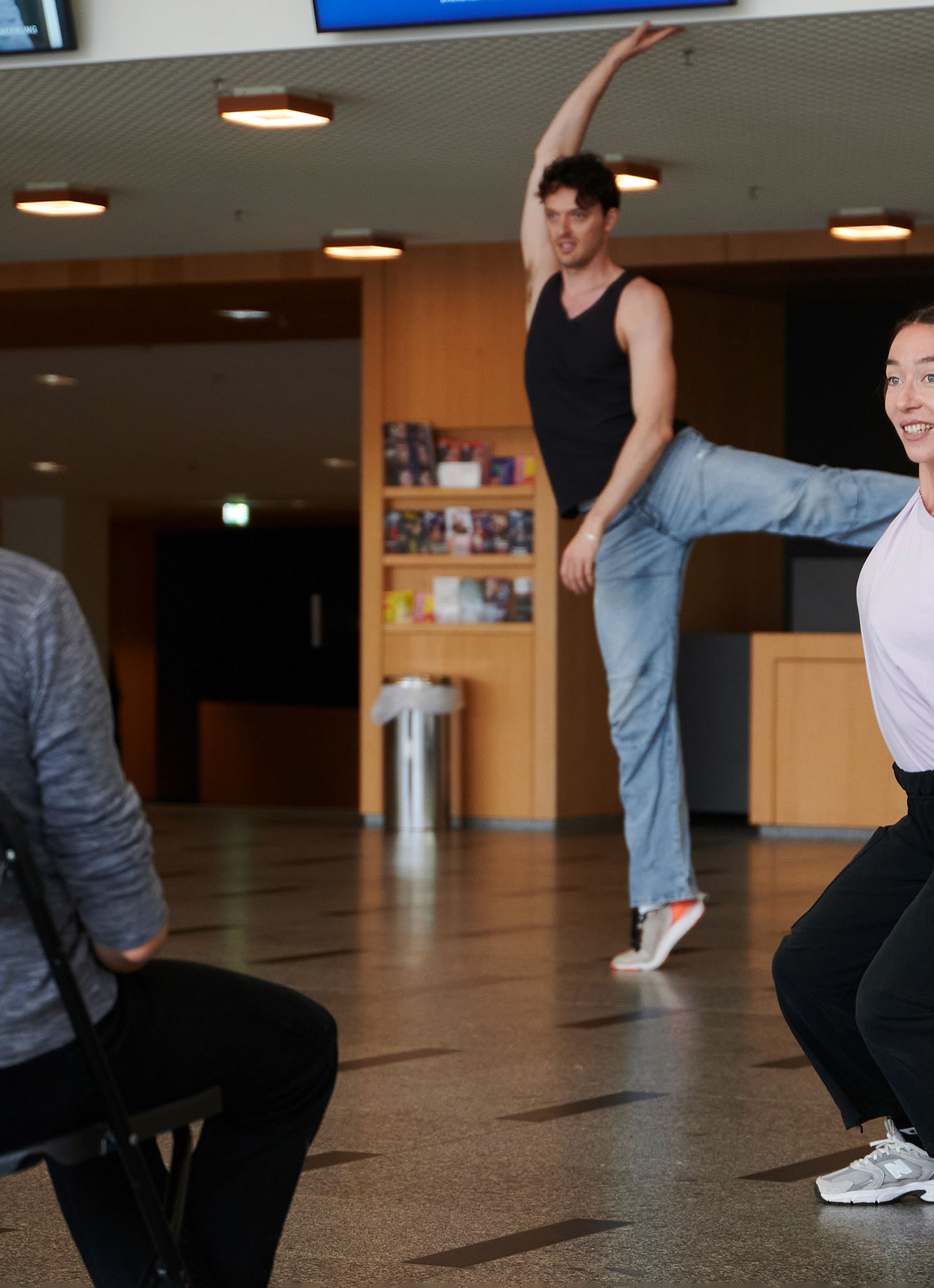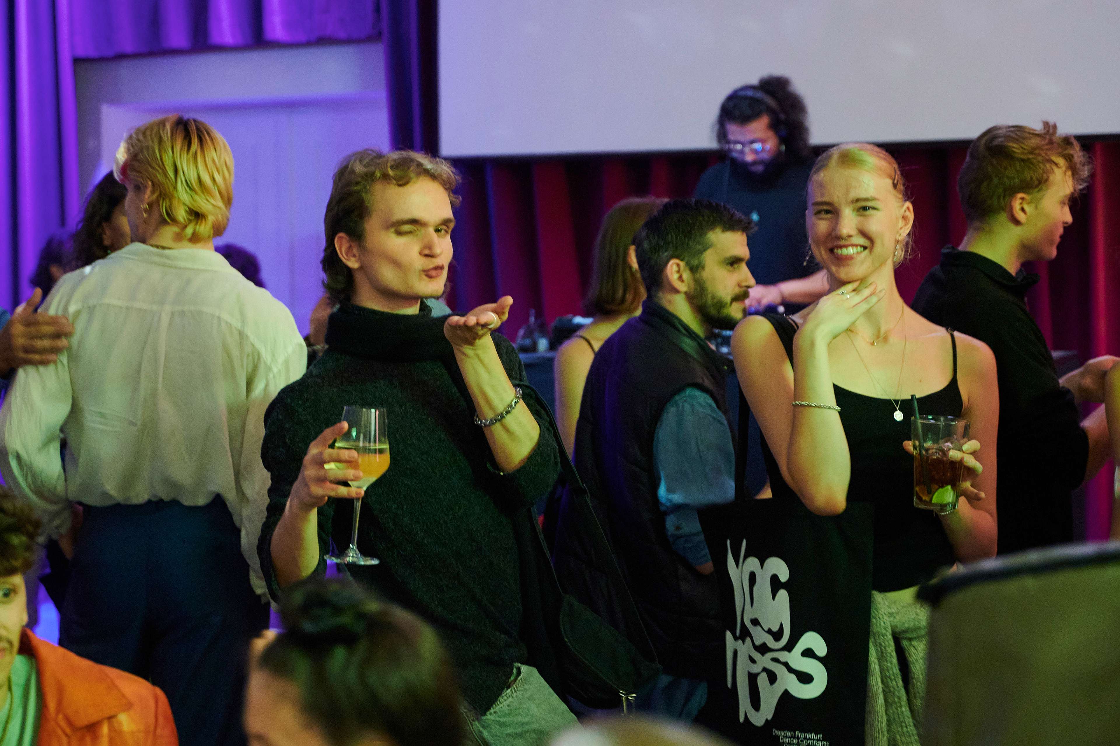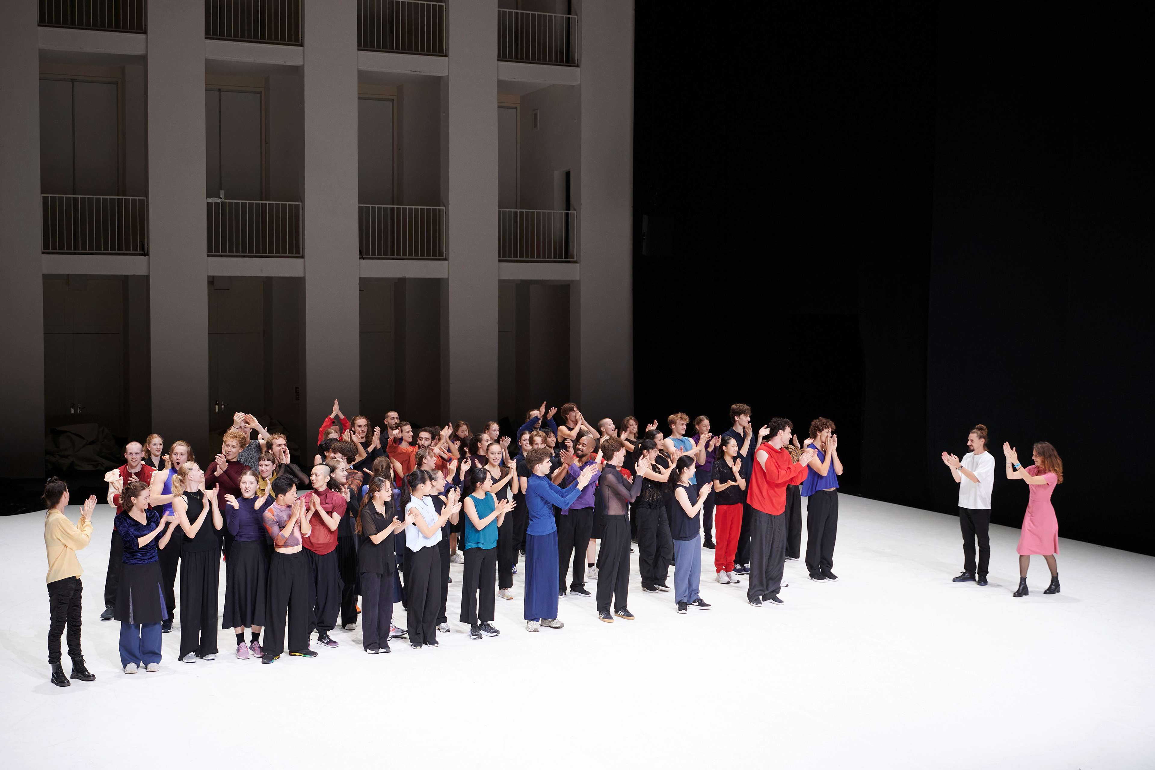 After spending a long time working on the creation separately, the dancers of the DFDC and the students were excited to finally be able to rehearse together in the week prior to the premiere. The intensive work paid off and all the dancers were able to captivate the audience, so that there was still plenty of dancing at the subsequent premiere party.