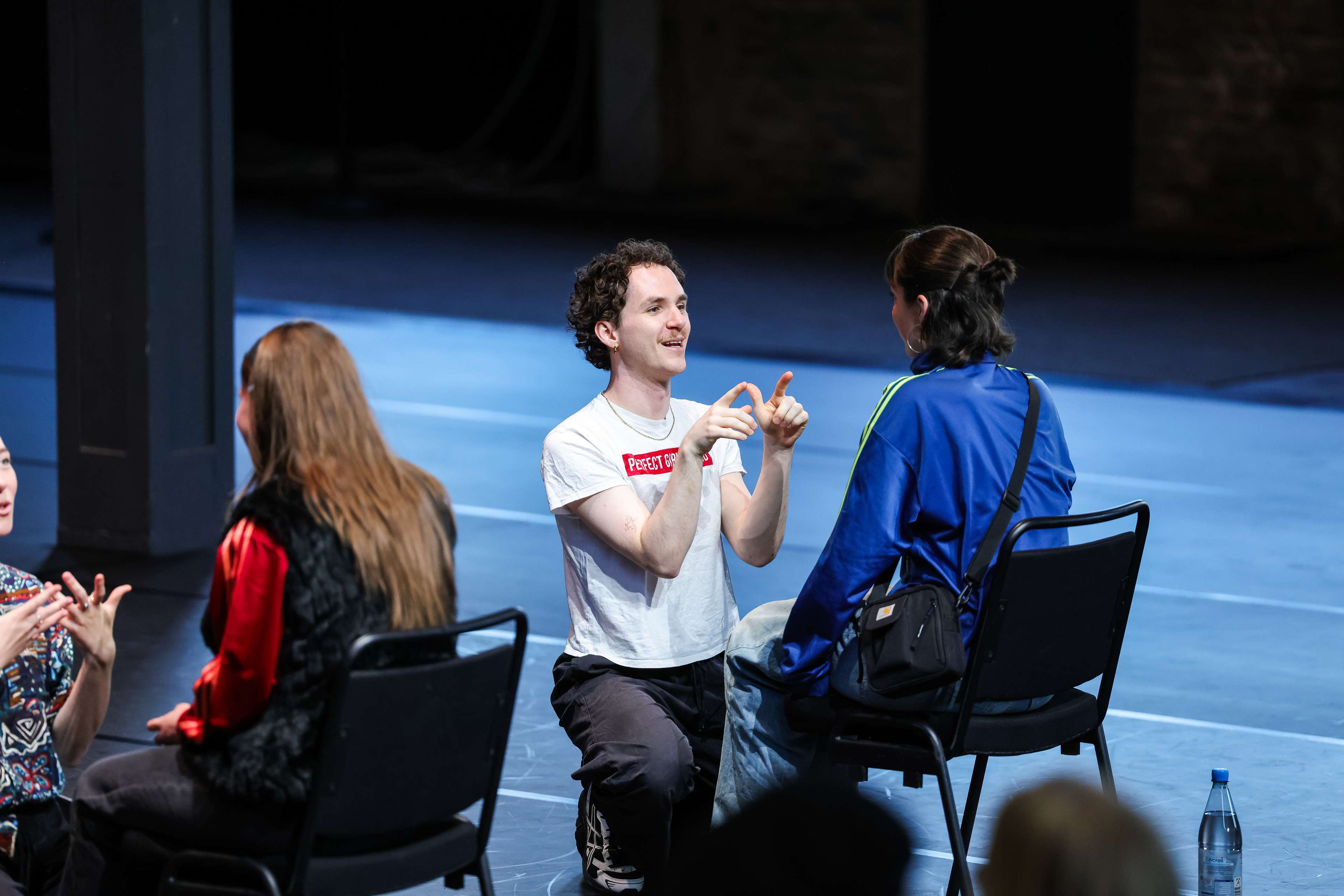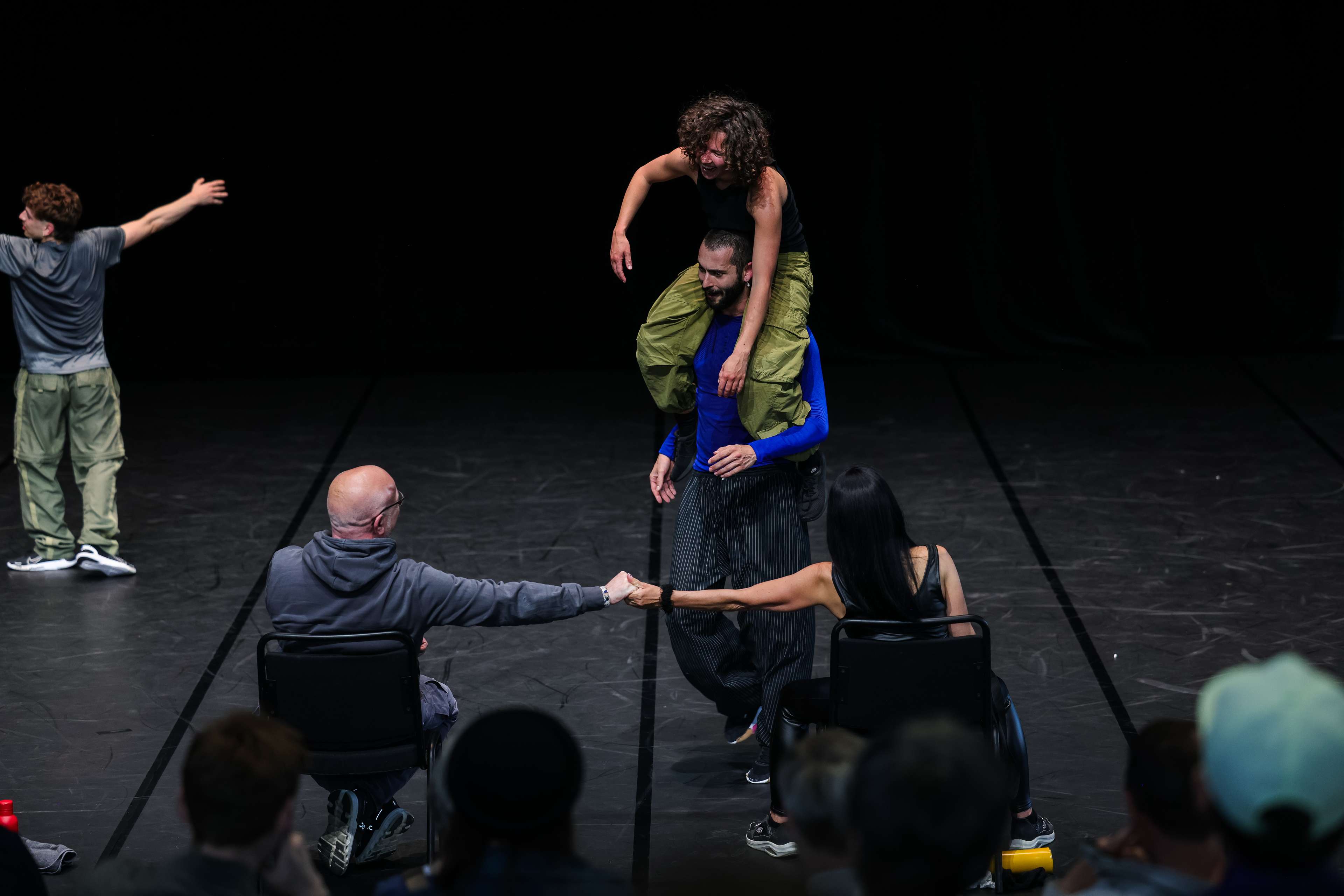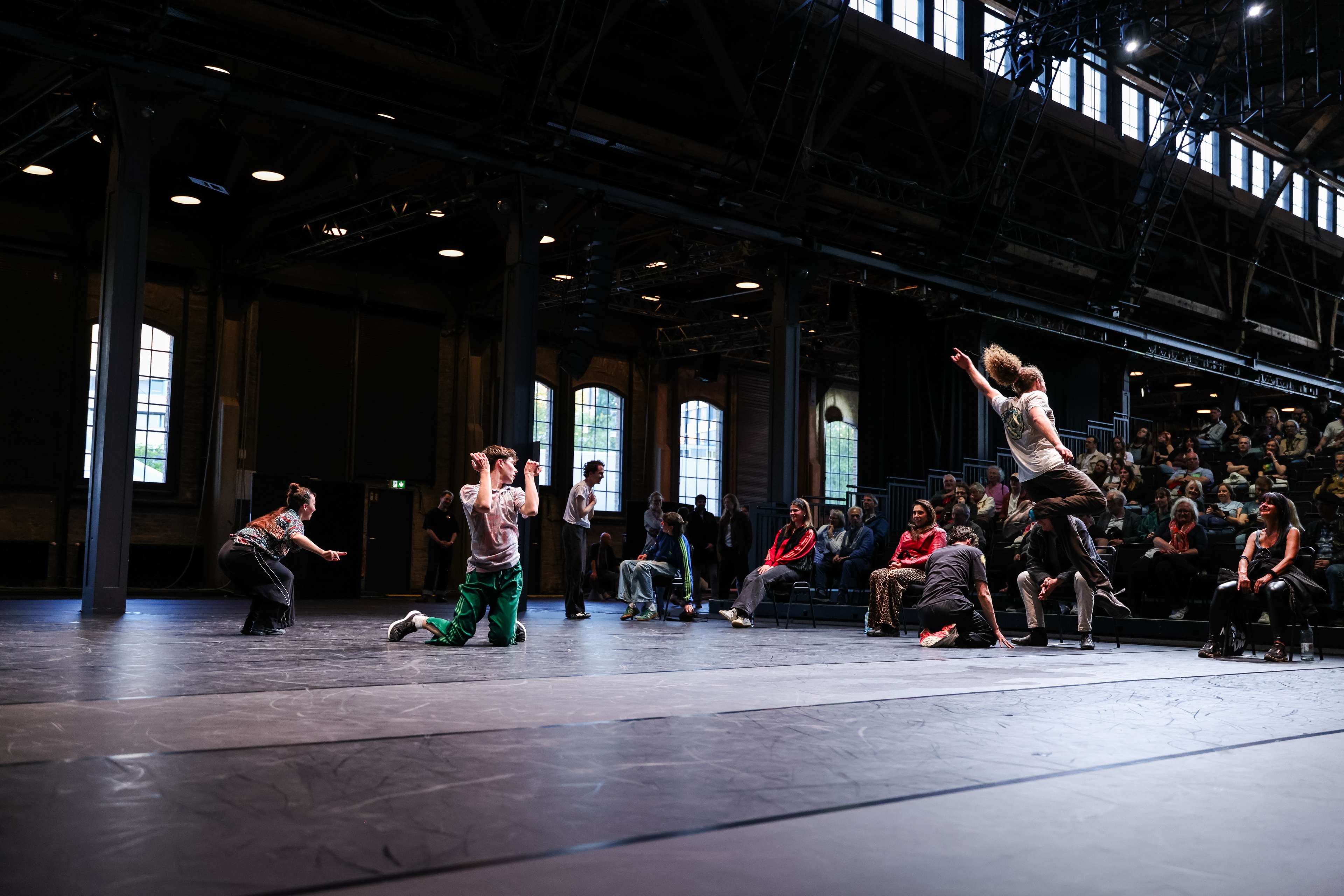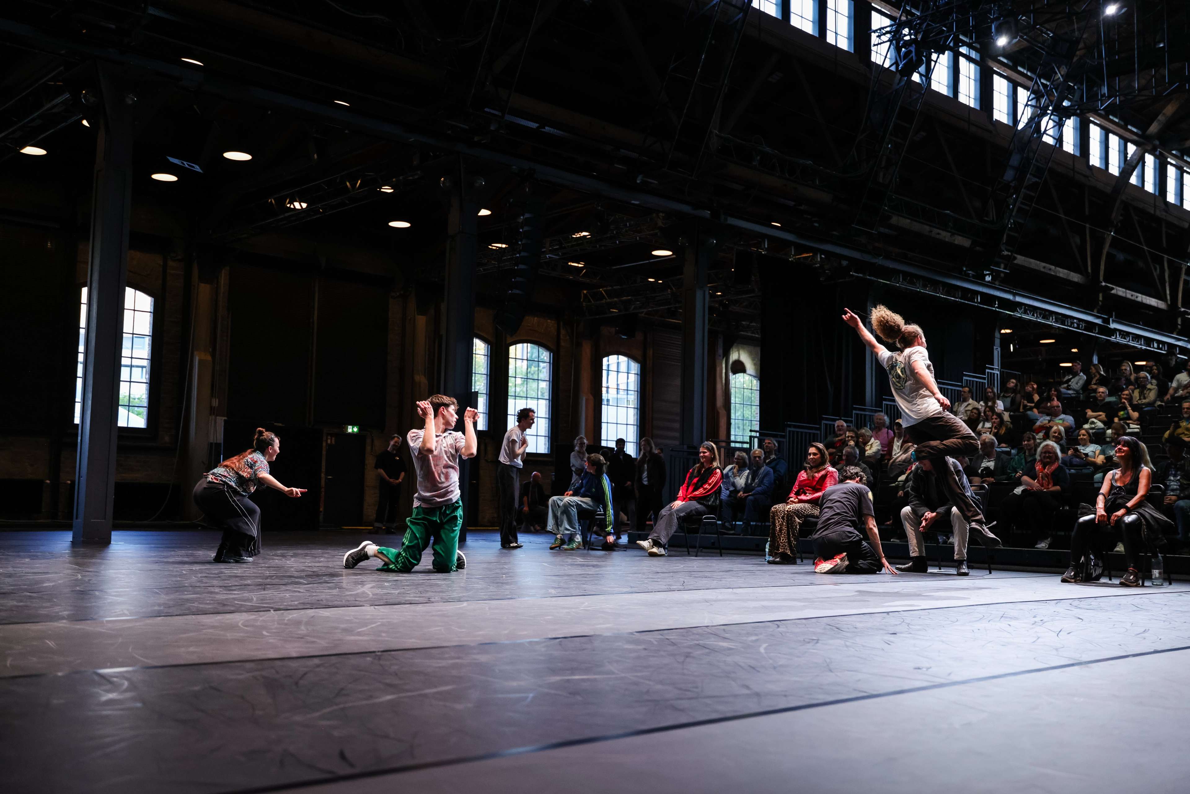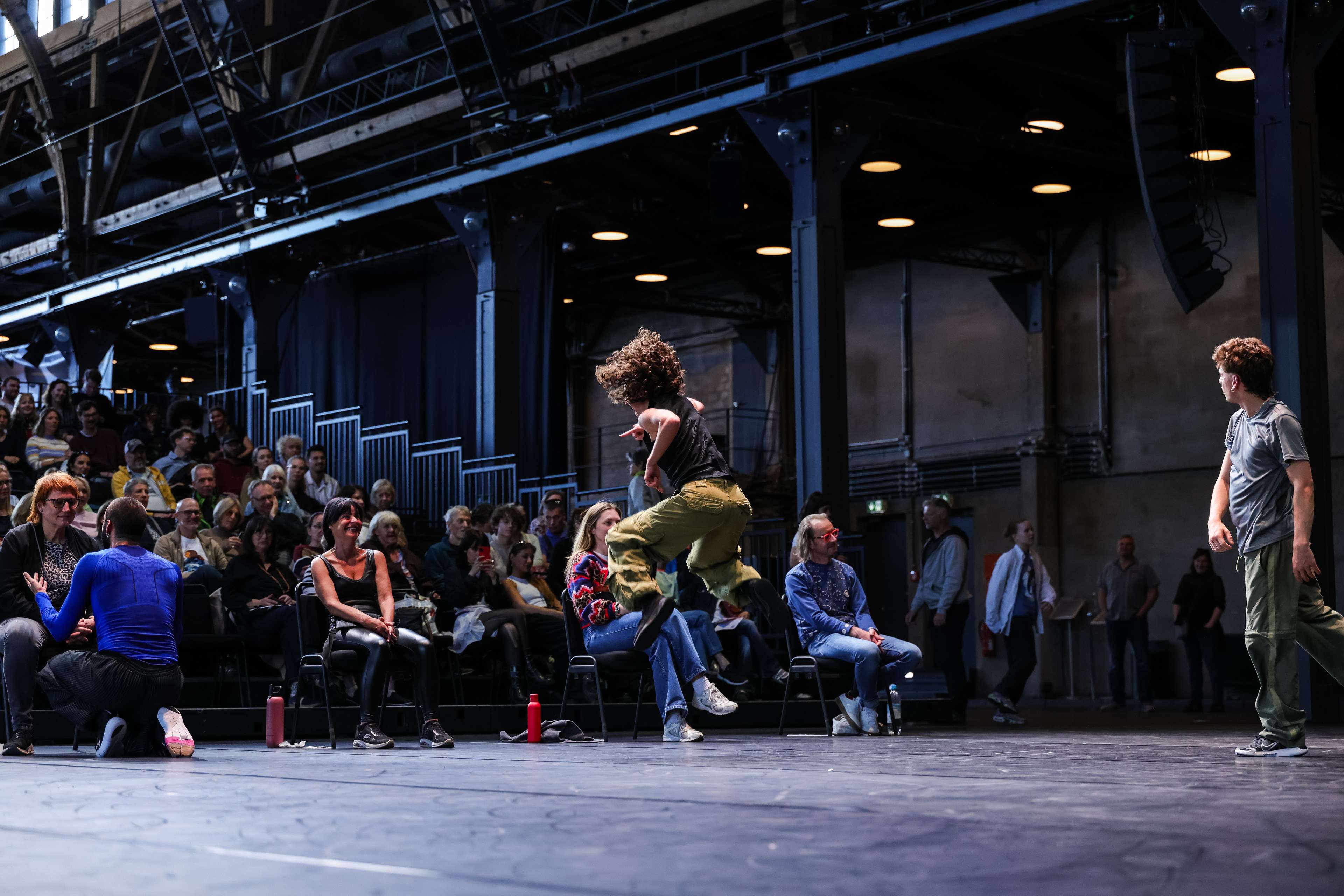 Ein Stuhl, ein*e Tänzer*in – das ist der Ausgangspunkt für „One One One“. Wer Platz nimmt, wird zum Fokus für den Tanz: Die Tänzer*innen nehmen Impulse der Sitzenden auf und nutzen diese als Inspiration für ihre Improvisation. Es wird dann so lange für die jeweils sitzende Person getanzt, wie beide Seiten den Blickkontakt halten. Ein stummer Dialog entsteht, eine exklusive Begegnung und eine Möglichkeit, Tanz mit neuen Augen zu entdecken.