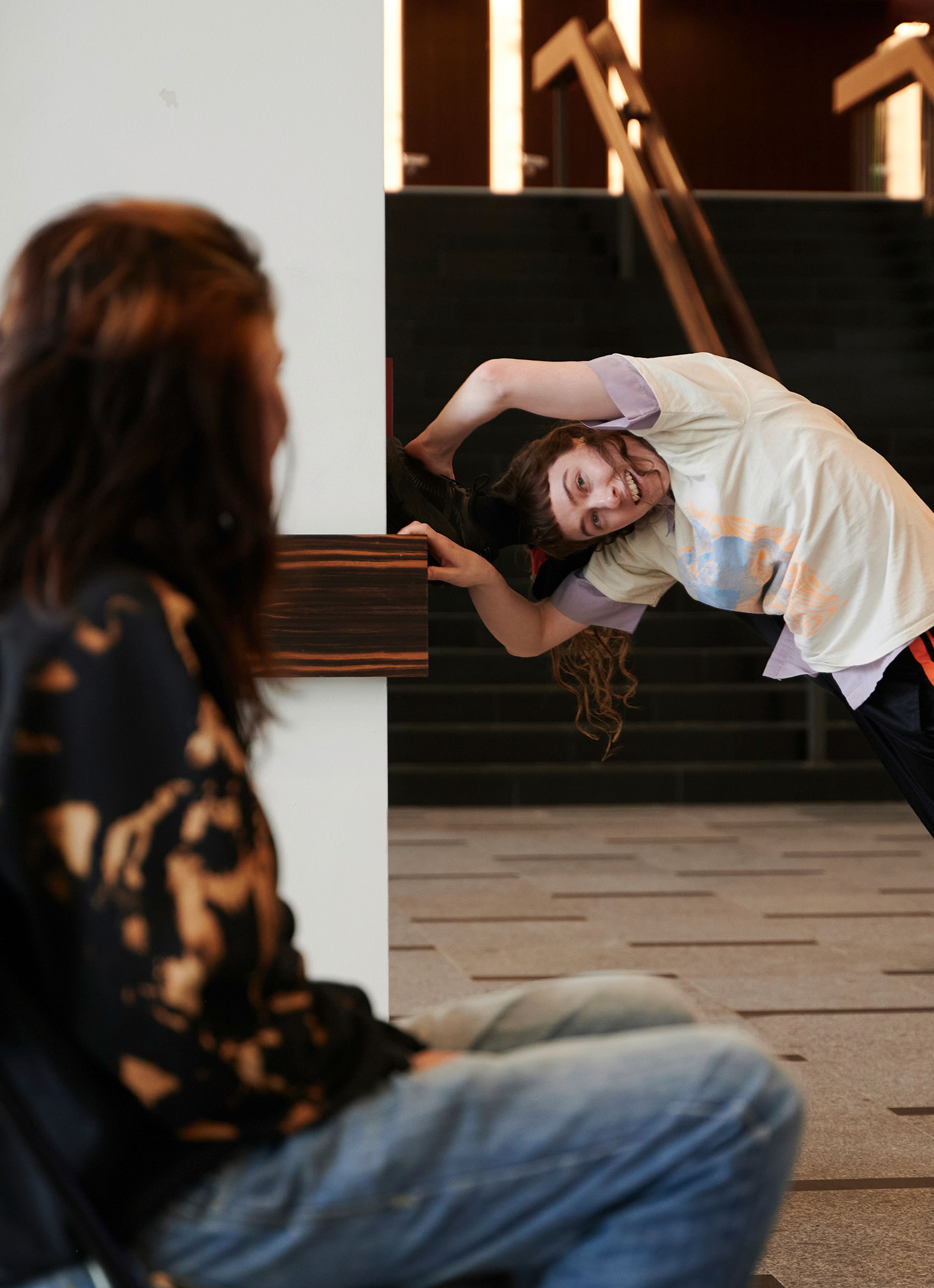 Ein Stuhl, ein*e Tänzer*in – das ist der Ausgangspunkt für „One One One“. Wer Platz nimmt, wird zum Fokus für den Tanz: Die Tänzer*innen nehmen Impulse der Sitzenden auf und nutzen diese als Inspiration für ihre Improvisation. Es wird dann so lange für die jeweils sitzende Person getanzt, wie beide Seiten den Blickkontakt halten. Ein stummer Dialog entsteht, eine exklusive Begegnung und eine Möglichkeit, Tanz mit neuen Augen zu entdecken.