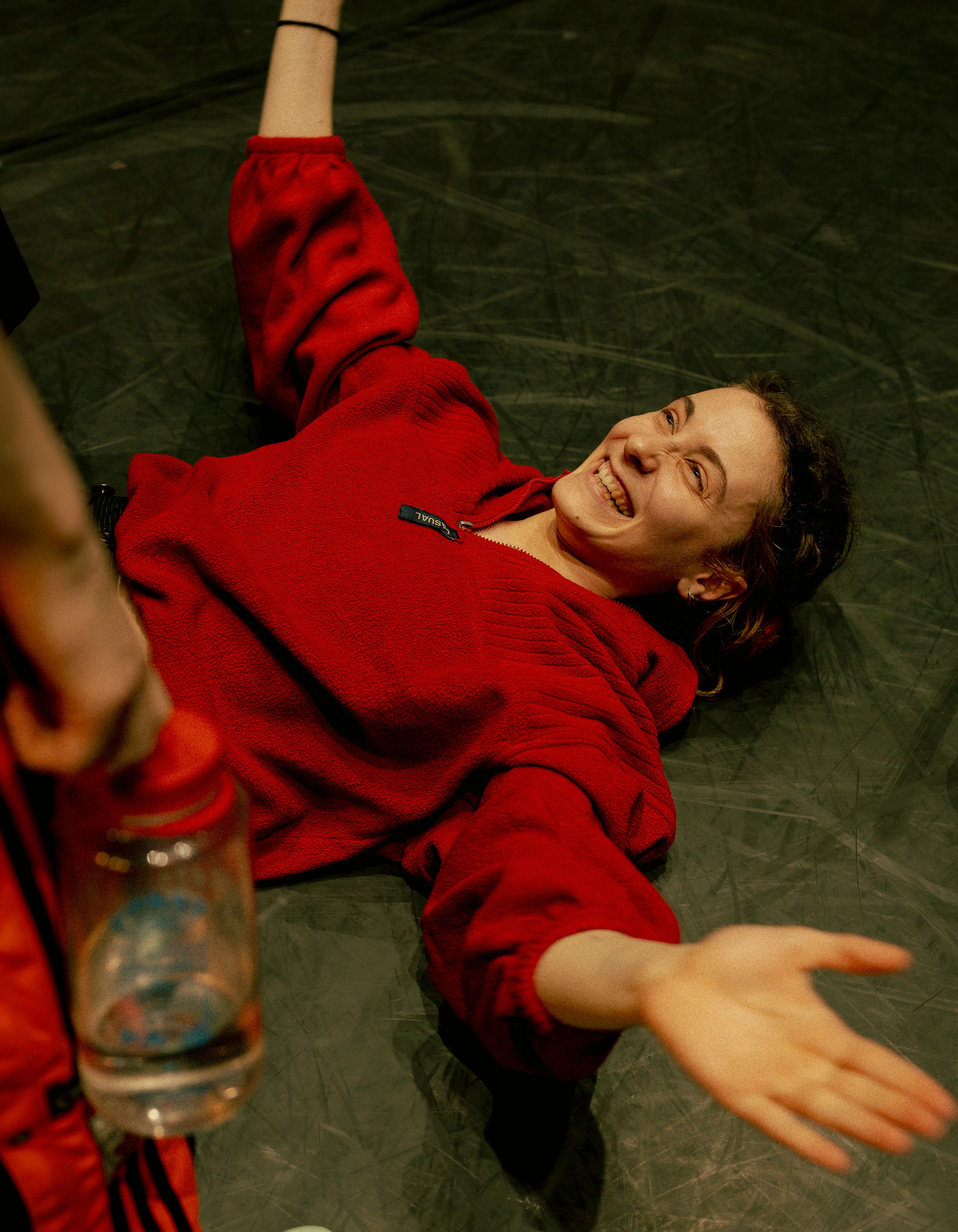 Wir möchten auch unsere Verbindung mit Ihnen vertiefen. Der Grundstein ist gelegt, aber für alles Kommende gilt noch mehr: Ohne Sie sind wir nichts. Erst in der Wahrnehmung des Publikums vollenden sich unsere Bühnenarbeiten. Darüber hinaus laden wir Sie im Rahmen unseres Education-Programms herzlich ein, sich mit uns auszutauschen, gemeinsam zu lernen und zu tanzen – vielleicht werden Sie auch selbst Teil einer Performance?! Um eine echte Beziehung einzugehen, muss man sich ein Stück weit öffnen. Mit diesem Vorsatz haben wir für die Bilder dieser Spielzeit mit der Fotografin Sitara Thalia Ambrosio zusammengearbeitet. Sie ist 2024 Residenzkünstlerin in Hellerau und ausgezeichnet mit dem PORTRAITS – Hellerau Photography Award 2023. Mit ihrem sensiblen und zugleich präzisen Blick hat sie uns eine Woche lang begleitet und besondere Momente hinter den Kulissen festgehalten.